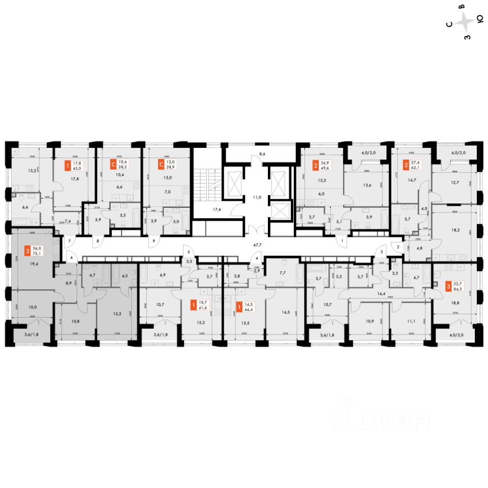 Продаётся 3-к квартира номер 232 общей площадью 75.1 кв.м. на 8-м этаже 16 этажного дома. Отделка Whitebox. Цена с учётом скидки!