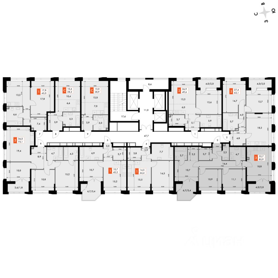 Продаётся 3-к квартира номер 238 общей площадью 85.9 кв.м. на 9-м этаже 16 этажного дома. Отделка Whitebox. Цена с учётом скидки!