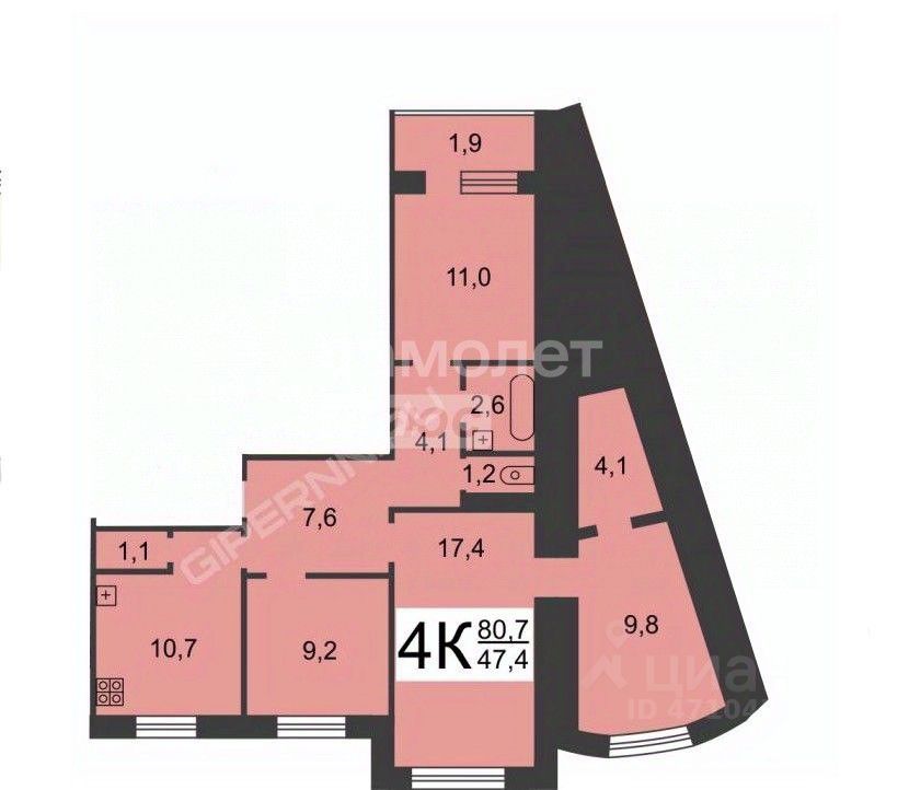 47,4 м²