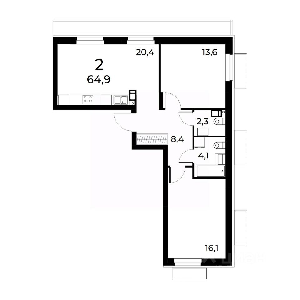 • Просторные кухни-гостиные до 23 м2 для семейных встреч и праздников