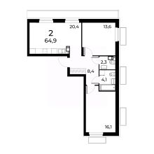 Продается 2- комнатная квартира площадью 64,9 на 6 этаже 10 этажного дома в Квартале Заречье от застройщика ГК АГРОСПЕЦТЕХ.