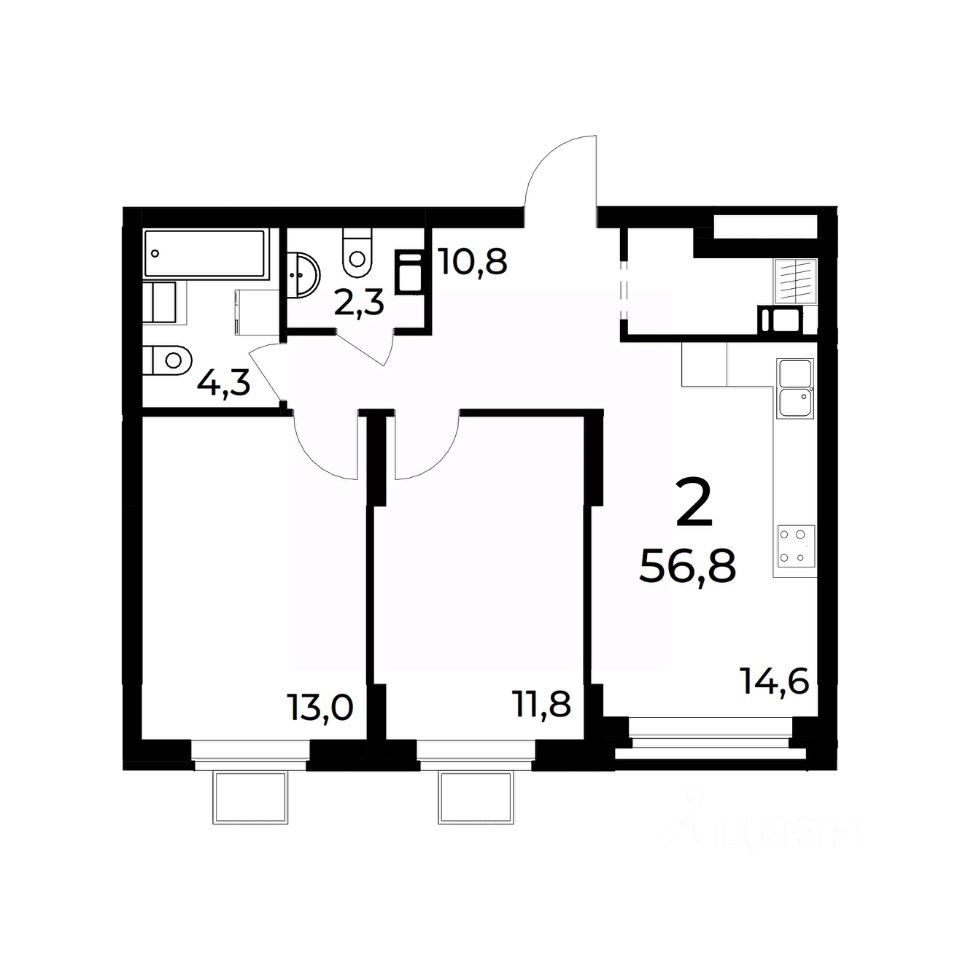 Продается 2- комнатная квартира площадью 56,8 на 5 этаже 15 этажного дома в Квартале Заречье от застройщика ГК АГРОСПЕЦТЕХ.