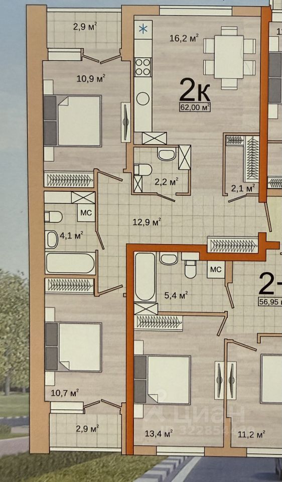 В вашем распоряжении просторная жилая площадь 22.2 квадратных метра и удобная кухня размером 16.1 квадратных метров, где с удовольствием будут собираться все члены семьи. Квартира может похвастаться наличием двух лоджий, откуда открывается приятный вид на ухоженный двор, а также более чем одним санузлом, что значительно повышает комфорт проживания.