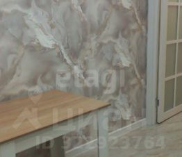 Полы: керамогранит "под мрамор" на кухне и в коридоре, ламинат в комнате.