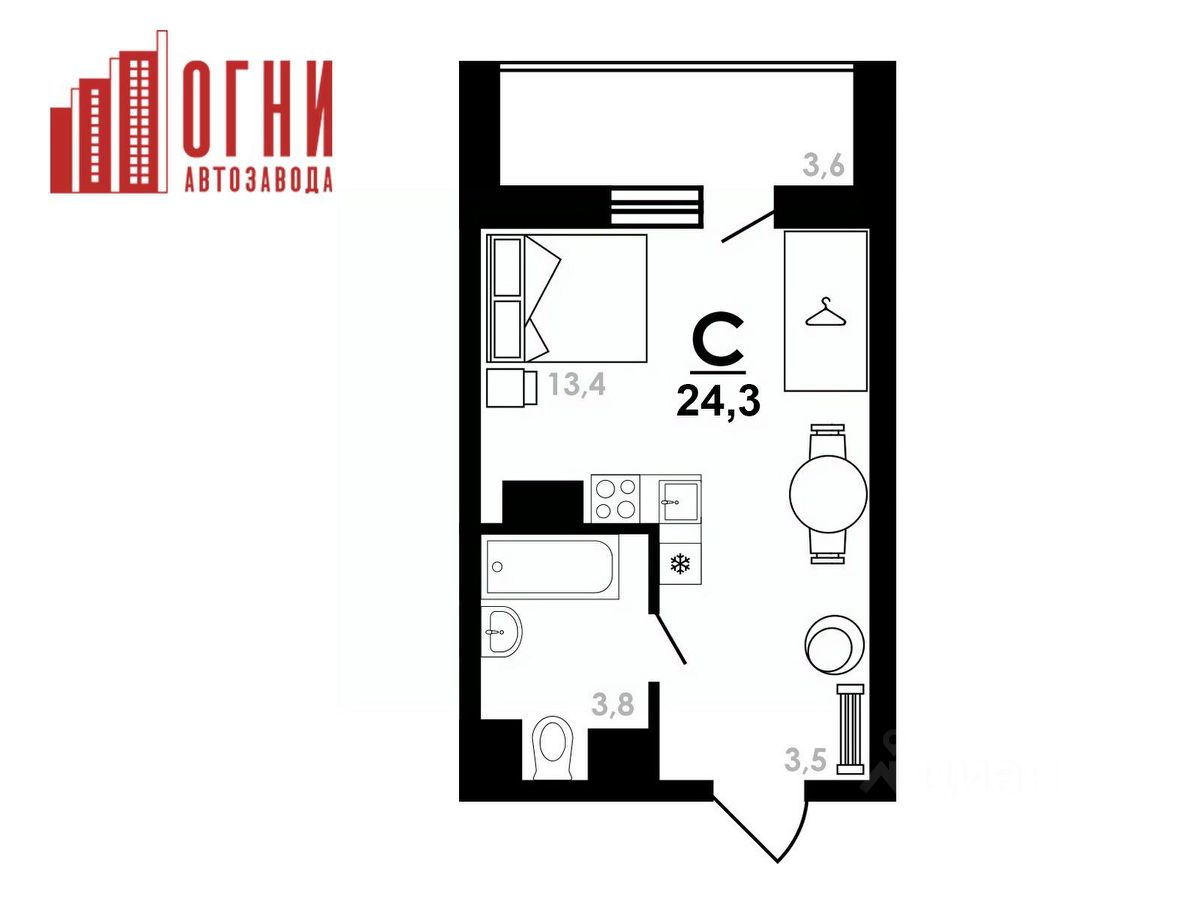 Продаётся студия в строящемся доме (дом 4), срок сдачи: IV-кв. 2026, общей площадью 24.3 кв.м., на 6 этаже. "Огни Автозавода" - новый современный жилой комплекс, где вы найдете квартиру своей мечты.