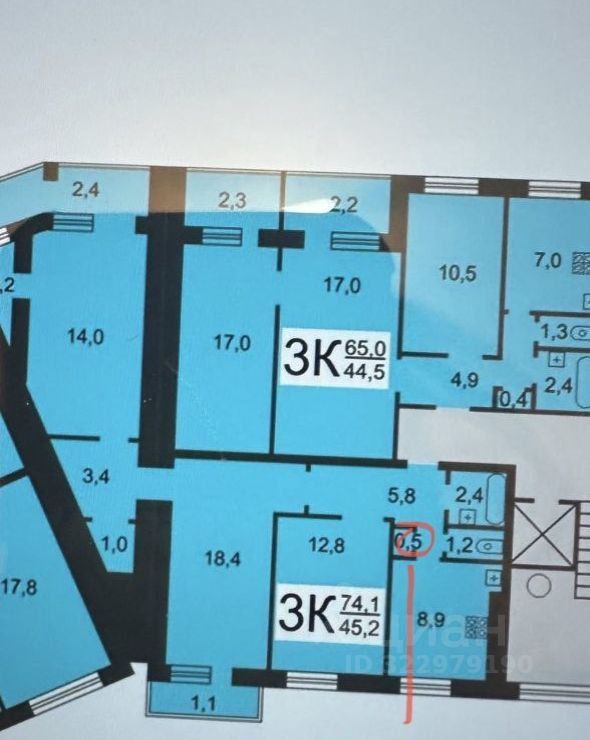74,1 м²