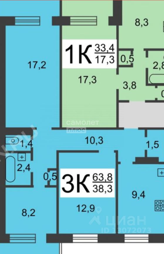 - Современный ремонт: В двух комнатах выполнен высококачественный ремонт: установлены натяжные потолки, уложено новое напольное покрытие, поклеены свежие обои. Санузел облицован качественной плиткой.