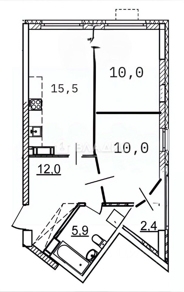 В продаже 2-ая квартира продуманной функциональной планировки: кухня 15,5м2 + две изолированные комнаты, лоджия, просторная прихожая, санузел 5,9м2.