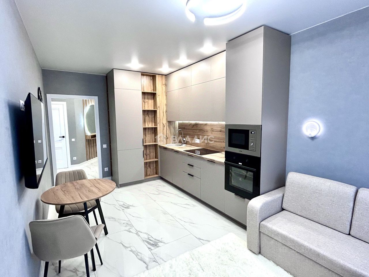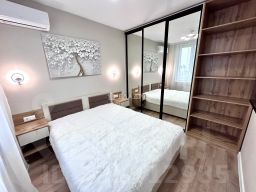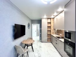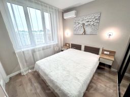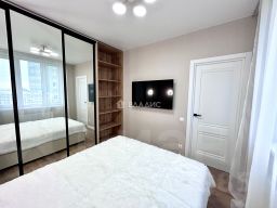 Квартира полностью укомплектована новой мебелью и техникой. Спальный гарнитур с большой кроватью , встроенными шкафами, кондиционер TCL. По всей квартире встроенная мебель, кабинет с рабочей зоной и подсветкой. В сан узле установлена стиральная машина Gоrеnjе. Все двери в квартире бизнеса класса фирмы Браво. Два телевизора 50 дюймов 4К Smаt tv. По всей квартире проведен высокоскоростной интернет , теплые полы .