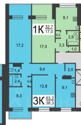 63,2 м²