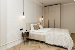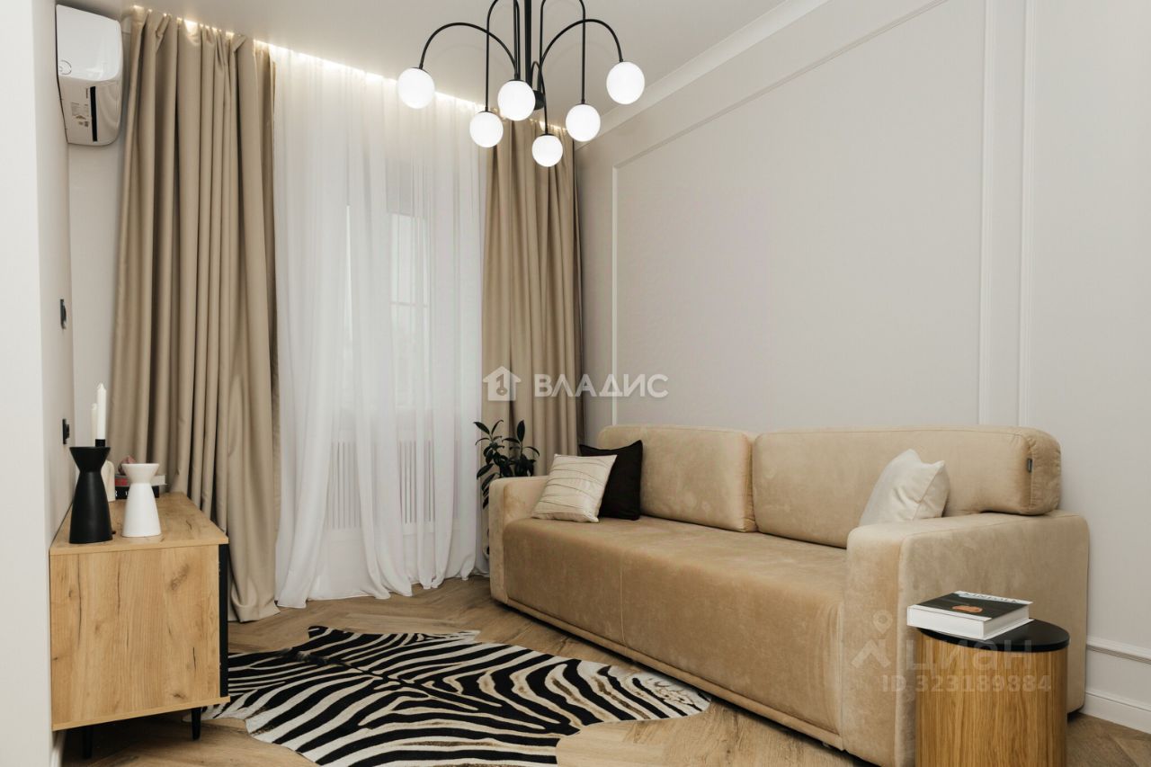 Дизайнерский ремонт с полной меблировкой и техническим оснащением, высокие потолки (3,2 м) и просторные комнаты (19,5 кв. м и 13,2 кв. м).