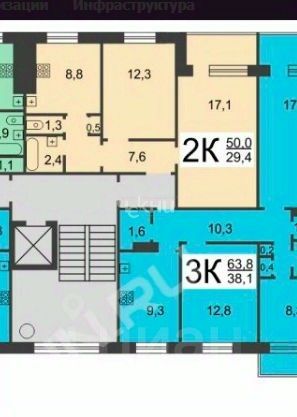 - Комнаты: раздельные, просторные 17,1 и 12,3 кв м