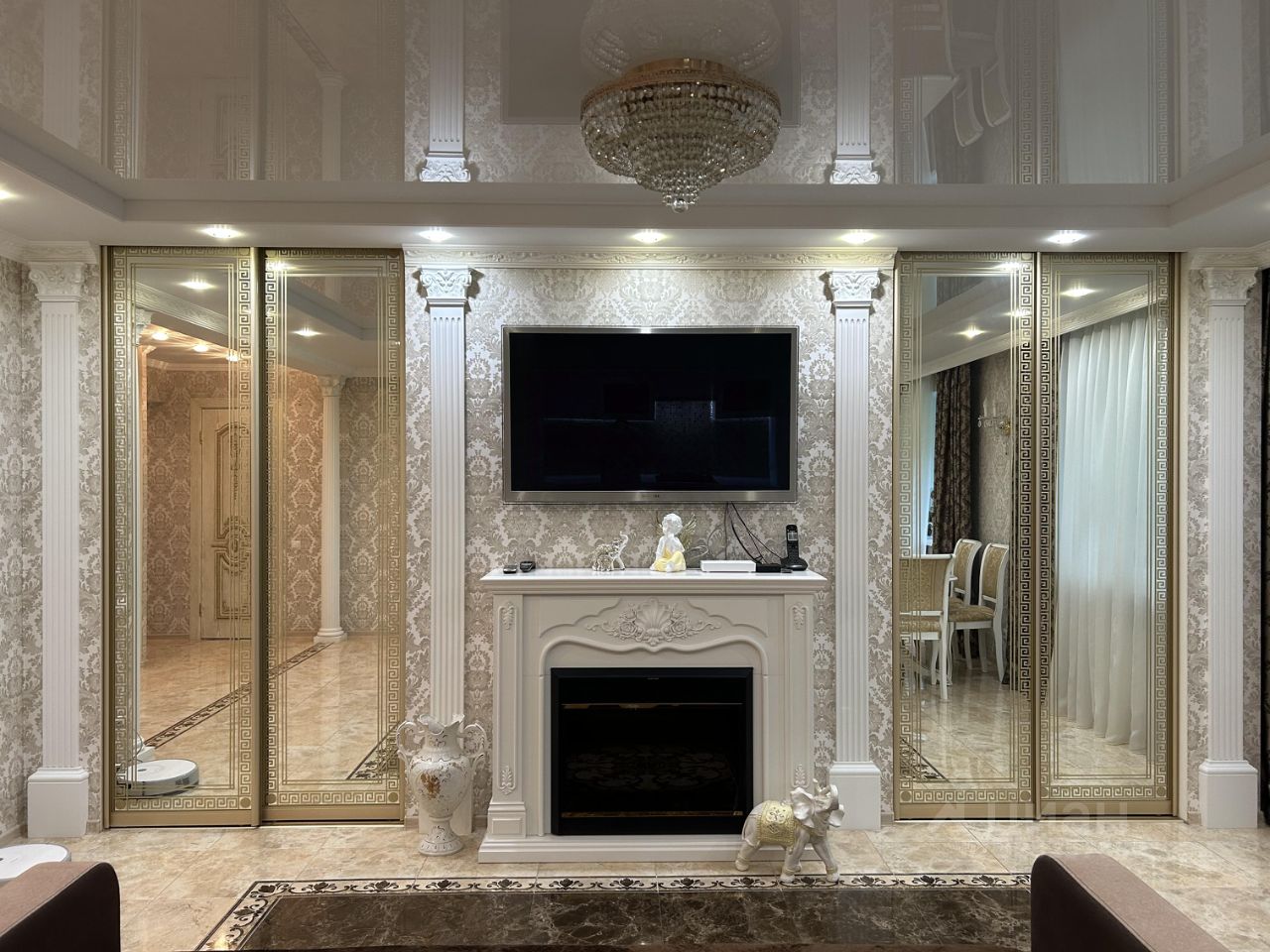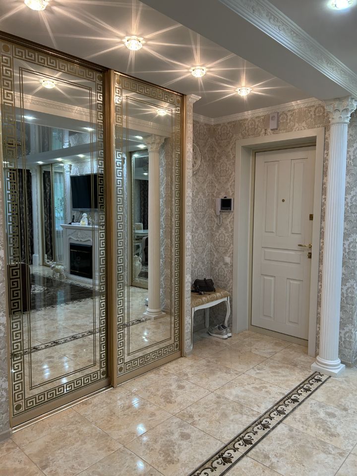 В квартире есть встроенные шкафы с зеркальными дверками, не нужно приобретать дополнительную мебель.