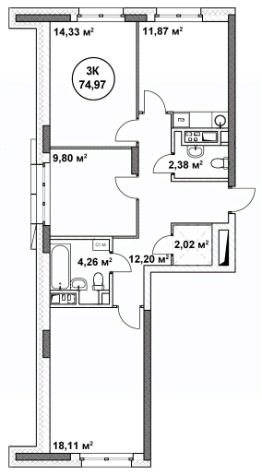 Продаётся 3-комнатная квартира в строящемся доме (Дом 1), срок сдачи: I-кв. 2028, общей площадью 74.97 кв.м., на 15 этаже. Новый жилой комплекс "Подкова Новая" от застройщика "ГК Подкова" расположен по адресу: г. Нижний Новгород, ул. Родионова