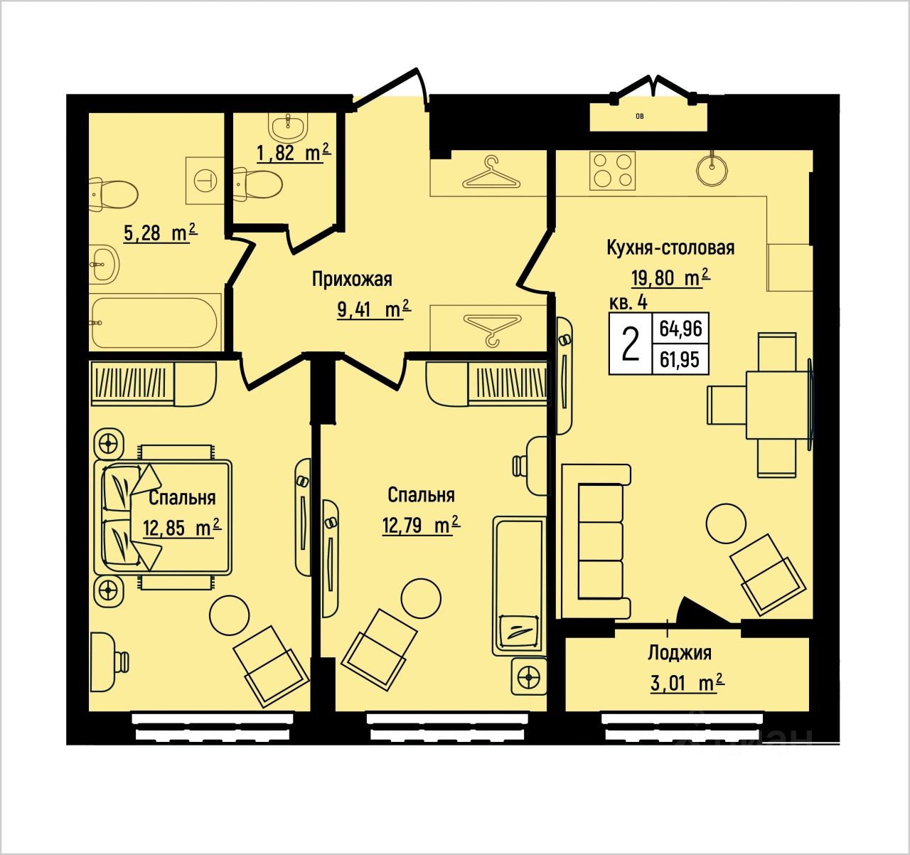 Общая площадь64,96 м²