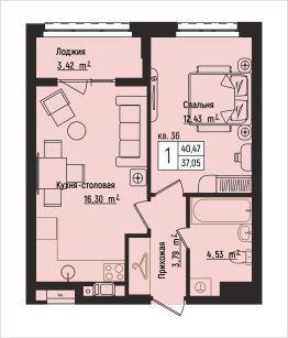 Общая площадь40,47 м²