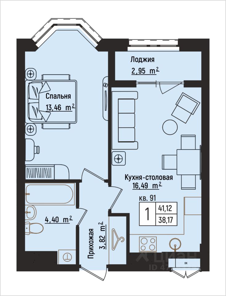 Общая площадь41,12 м²
