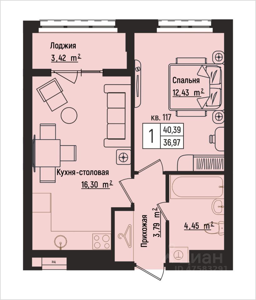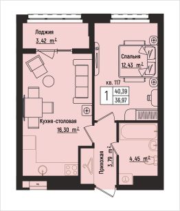 Общая площадь40,39 м²