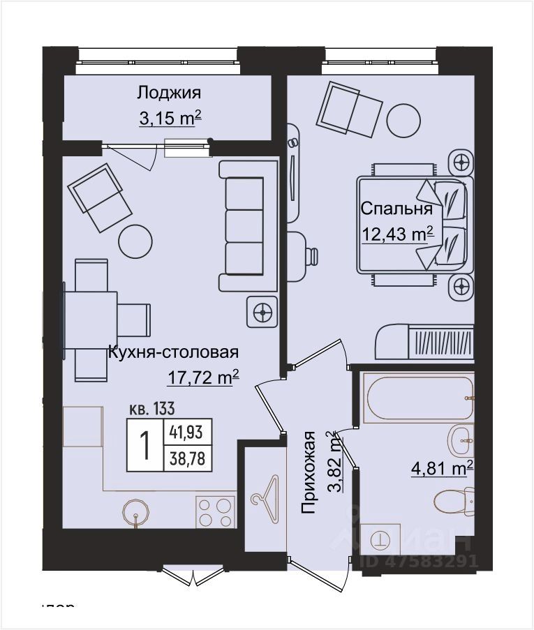 Общая площадь41,93 м²