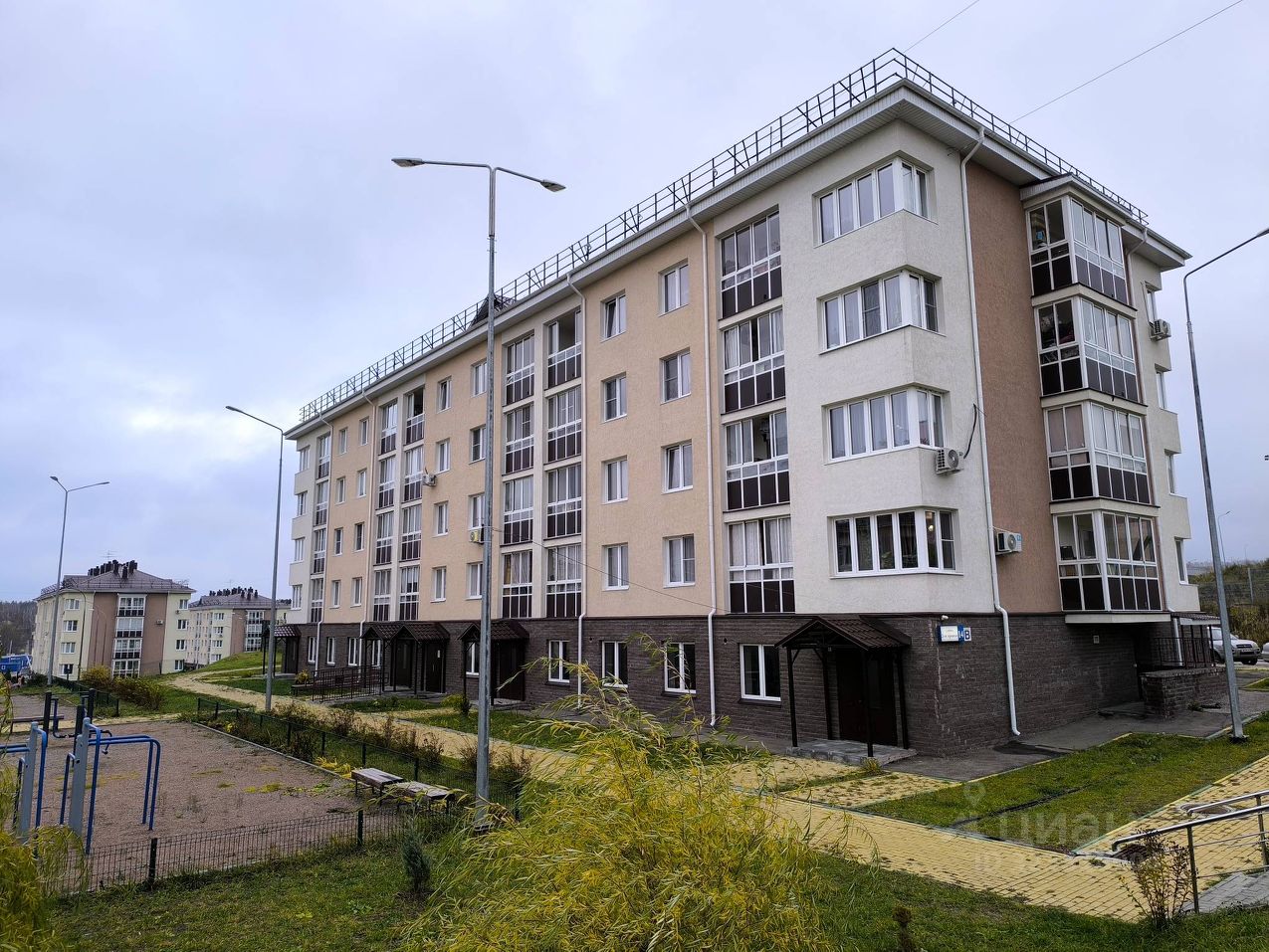 Дом удачно расположен, в центре ЖК на естественном возвышении. Не слышно шума от трассы, в двух шагах школа и детский сад, в соседнем доме продуктовый магазин и пункт выдачи интернет-торговли.