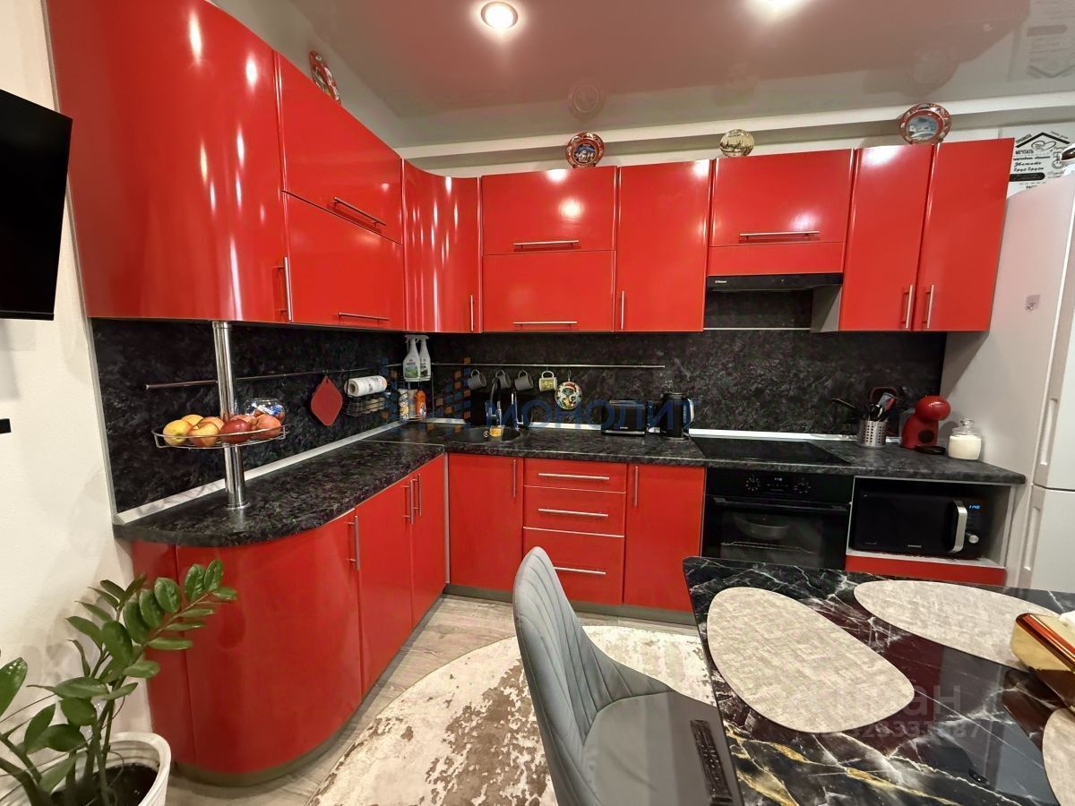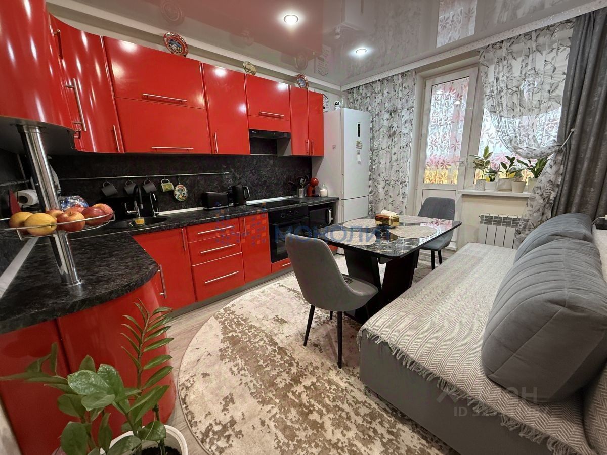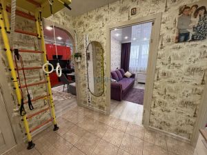 Бoльшaя кухня 12 кв.м (оcтаетcя куxонный гapнитур c вapoчнoй панелью и духовой шкаф). Совмещенный санузел в плитке, застекленная лоджия, также остается большой встроенный шкаф-стенли в зале.