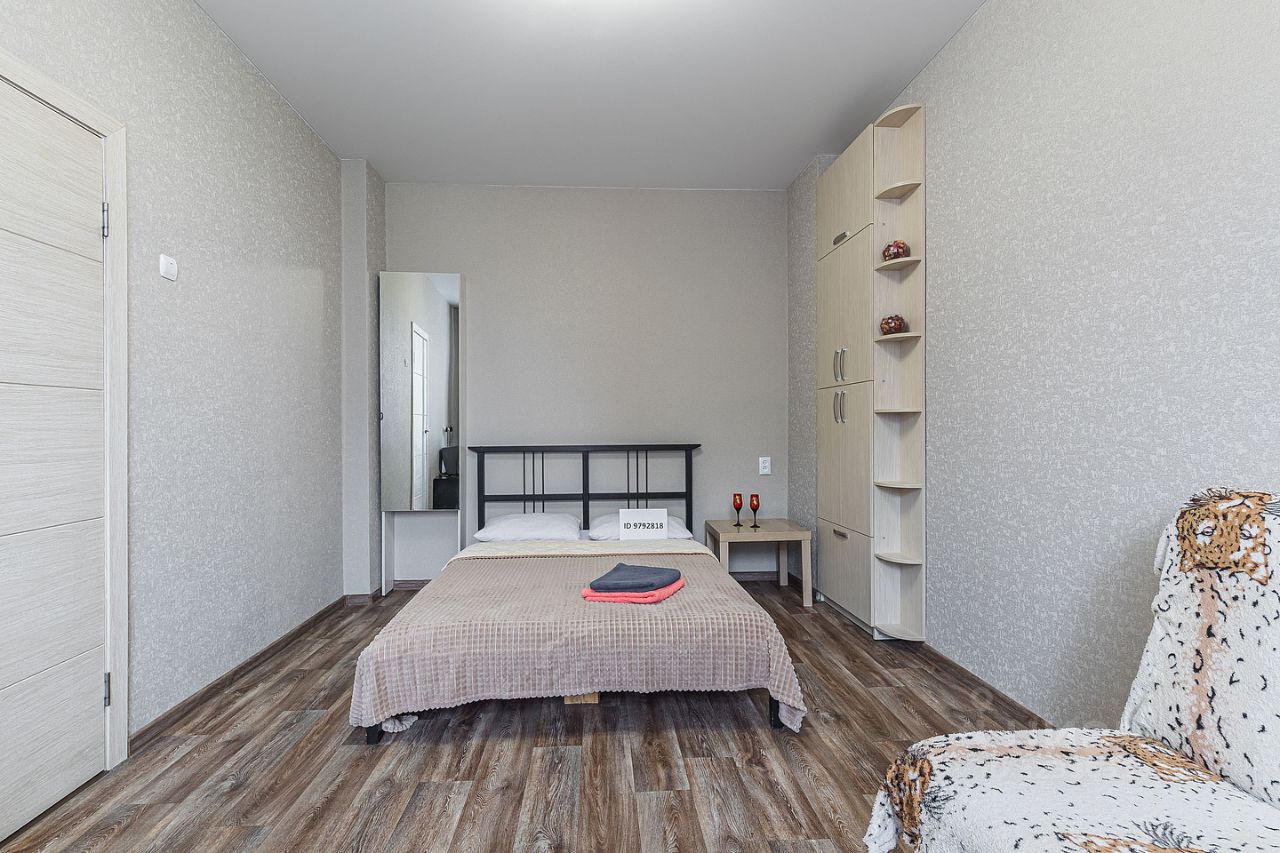 в комнате: кровать, встроенный шкаф, кондиционер (новый)