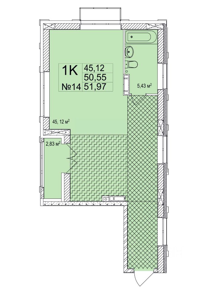 Общая площадь51,97 м²