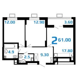 Просторная 2-комнатная квартира евроформата 61 кв.м. в ЖК "2Д Федосеенко".