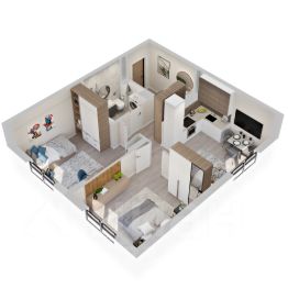 3D-модель в изображениях представлена исключительно в ознакомительных целях. Изображённые отделка, мебель, техника, предметы интерьера, декора и иные элементы оформления квартиры являются иллюстрацией возможного интерьера и не входят в состав приобретаемой квартиры. Подробности в отделе продаж.