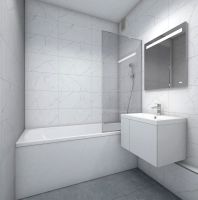 В жилых комнатах, кухне и прихожей — обои нейтрального оттенка, белые межкомнатные двери без стекол. Пол в жилых комнатах — ламинат под дуб, в кухне и прихожей — плитка. Натяжные потолки во всех помещениях. Стены и пол в ванной и санузле будут отделаны керамогранитом, в ванной установлен полный комплект сантехники, включая акриловую ванну с экраном и смесителем, тумбу для хранения под раковиной, зеркало с подсветкой. Застройщик также позаботился и о деталях, поэтому все инженерные коммуникации, стояки водоснабжения и канализации будут скрыты декоративными коробами. #z687Bm