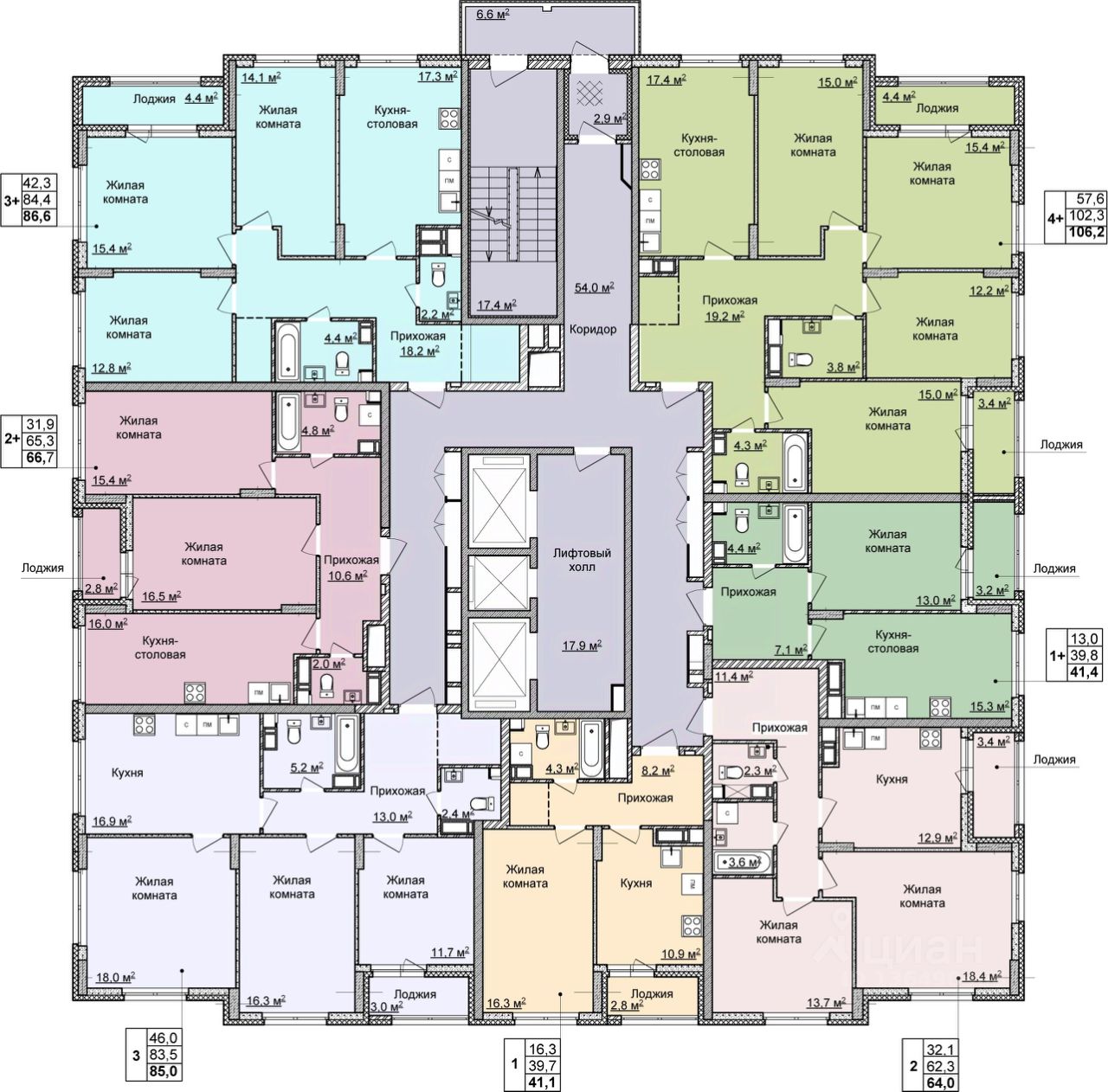 Просторная четырехкомнатная квартира с отделкой в ЖК "Мои Цветы" на 3 этаже. Общая площадь: 106.2 кв.м., жилая: 57.6 кв.м., площадь просторной кухни-столовой: 17.4 кв.м. Угловая квартира, окна oбecпeчивaют paвнoмepнoe ocвeщeниe в тeчeниe дня. В квартире две лоджии, один совмещенный и один раздельный санузел. Высота потолков 2.65 м.