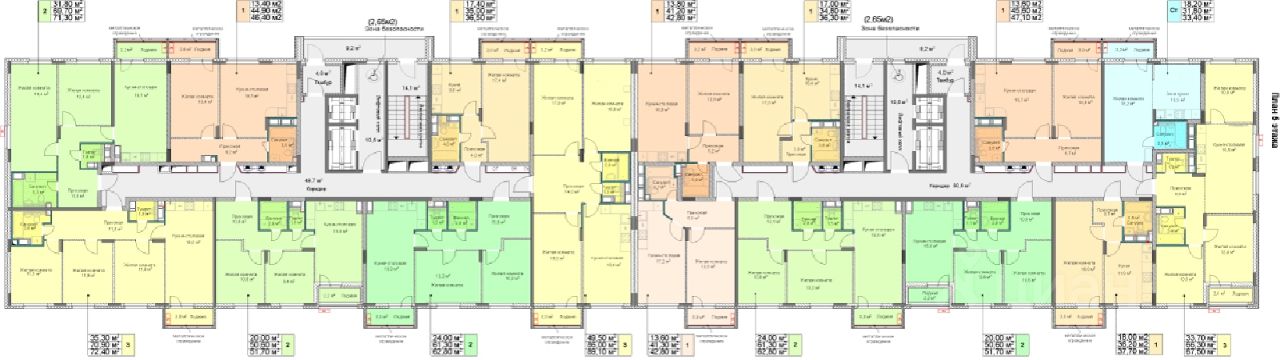 Типовые этажи повторяют стиль оформления входной группы первого этажа. Стены лифтовых холлов отделаны износостойким керамогранитом, что позволит сохранить отделку помещений на протяжении длительного времени.