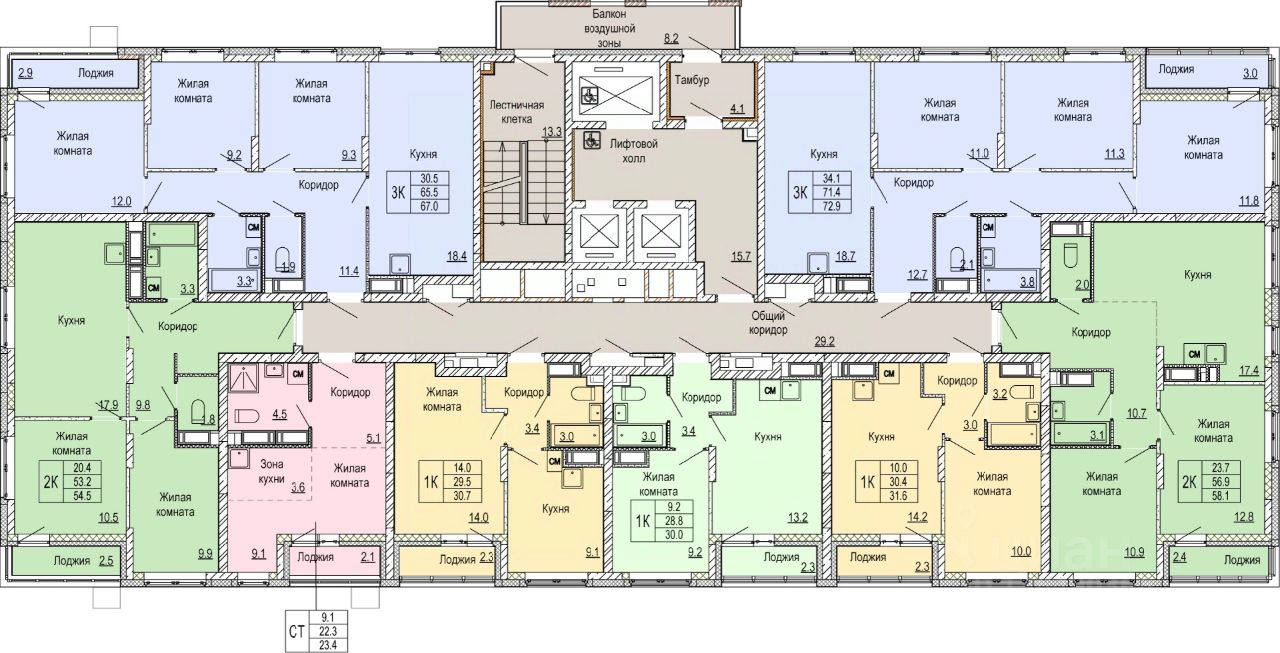 2-комн. квартира от застройщика с отделкой в ЖК "Кузнечиха город" на 21 этаже. Общая площадь: 58.1 кв.м., жилая: 23.7 кв.м., площадь просторной кухни-столовой: 17.4 кв.м. Квартира угловая, очень светлая, естественная вентиляция при открытии окон. В квартире одна лоджия, один раздельный санузел. Высота потолков 2.5 м.