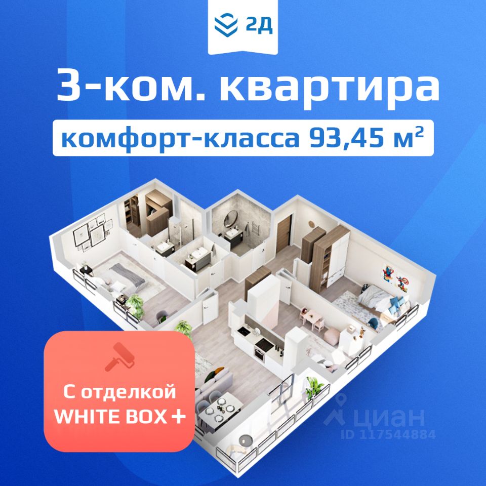 Внимание! Открылись продажи квартир с потолками 3,3 м на 10 этаже. Сдача дома в 2026 г. Ипотека от 6%, трейд-ин, рассрочка, отсрочка платежа с первым взносом 0 р. Подробности в отделе продаж. Стоимость квартиры указана по акции "Новогодняя выгода до 1,2 млн руб.". Действует при покупке квартиры в ипотеку или при 100% оплате. Подробности в отделе продаж. В квартире будет выполнена качественная предчистовая отделка white box +. 3-комнатная квартира евроформата, 93,45 кв.м. При проектировании планировочных решений в ЖК "2Д Федосеенко" мы исходили из сценариев жизни современной семьи. Для родителей здесь есть мастер-спальня с санузлом и отдельной гардеробной: с утра без лишнего шума можно собраться на работу, ночью нет необходимости идти через всю квартиру, чтобы не разбудить спящих детей, особенно, если они еще совсем маленькие. Все комнаты правильной формы - легко разместить мебель, используя полезно каждый метр пространства. Сердце квартиры - просторная кухня-гостиная 24,5 кв.м. с выходом на балкон. Здесь размещается и зона приготовления и зона отдыха. Это общее пространство, которое используется для семейных вечеров и встреч с друзьями. Отметим также отдельную зону для гардероба около входа. В мастер-спальне и кухне-гостиной по два окна: в комнатах будет много света, что сделает пространство визуально больше. Семейный жилой комплекс 2Д Федосеенко представляет собой 10-этажный трехподъездный дом комфорт-класса с подземным паркингом. На первом этаже откроются кафе, магазины и другие объекты необходимой инфраструктуры. В приватном и безопасном дворе без машин будут расположены детские площадки, спортивная зона, уединенное пространство для отдыха взрослых. Разноуровневое освещение и комплексное озеленение подарит ощущение уюта и спокойствия. - Современная архитектура дома от проектной компании ГОРПРО; - Европланировки с мастер-спальнями, отдельными гардеробными, увеличенной площадью остекления; - Выводы радиаторов отопления из стены (удобно мыть пол, нет стояков около окон); - Дизайнерская отделка подъездов; - Высокие потолки: со 2 по 8 этаж - 2,7 м (от чистового пола до перекрытия потолка), на 9 и 10 этаже - 3,3 м (от чистового пола до перекрытия потолка); - Корзины для кондиционеров, чтобы сохранить статусный вид фасада; - Закрытая территория внутреннего двора "без машин" с системой контроля доступа и видеонаблюдением; - Детские площадки для разных возрастов; Поблизости есть все, что необходимо для комфортной жизни: школы 81, 93, детские сады 98, 211, остановка общественного транспорта "Достоевского", Сормовский парк, магазины продуктов, аптеки, пункты выдачи заказов крупнейших маркетплейсов. 3D-модель в изображениях представлена исключительно в ознакомительных целях. Изображённые отделка, мебель, техника, предметы интерьера, декора и иные элементы оформления квартиры являются иллюстрацией возможного интерьера и не входят в состав приобретаемой квартиры. Подробности в отделе продаж.