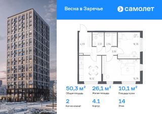 Строим кварталы для жизни с заботой о будущем. Предлагается 2-комнатная квартира комфорт-класса 50,29 кв.м в корпусе 4.1 на 14 этаже, в ЖК "Весна в Заречье"