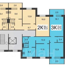 Общая площадь-75,5 м²