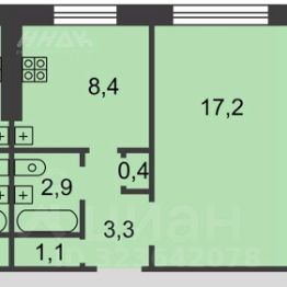 Общая площадь 33,3 кв. м.