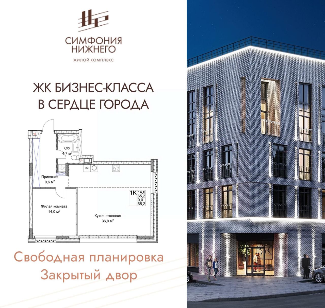 Просторная 1-комн. квартира в ЖК "Симфония Нижнего" на 2 этаже. Квартира без отделки, полностью готова к ремонту. Общая площадь: 65.2 кв.м., жилая: 14 кв.м., площадь просторной кухни-столовой: 36.9 кв.м. Квартира угловая, окна oбecпeчивaют paвнoмepнoe ocвeщeниe в тeчeниe дня. В квартире один совмещенный санузел. Высота потолков 3.0 м.
