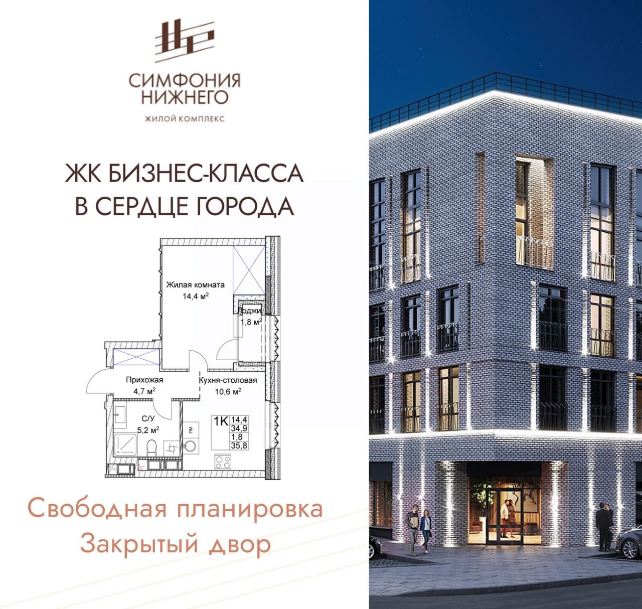 1-комн. квартира в ЖК "Симфония Нижнего" на 5 этаже. Квартира без отделки, новый владелец может сделать ремонт по своему проекту. Общая площадь: 35.8 кв.м., жилая: 14.4 кв.м., площадь просторной кухни-столовой: 10.6 кв.м. Все окна выходят на одну сторону. В квартире одна лоджия, один совмещенный санузел. Высота потолков 3.0 м.