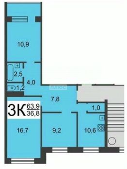 63,9 м²