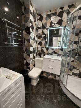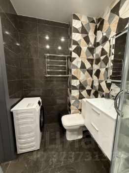 В квартире выполнен качественный ремонт, на полу ламинат, теплый пол на кухне и в санузле, высокие потолки (натяжные), санузел совмещенный в плитке с душевой кабиной и качественной сантехникой.