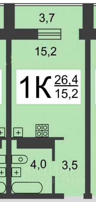 Студия не угловая, большая для этого проекта домов, площадь без балкона 22,7 кв.м., просторный санузел, полностью остекленная лоджия и комната максимально большая по площади для этих студий.