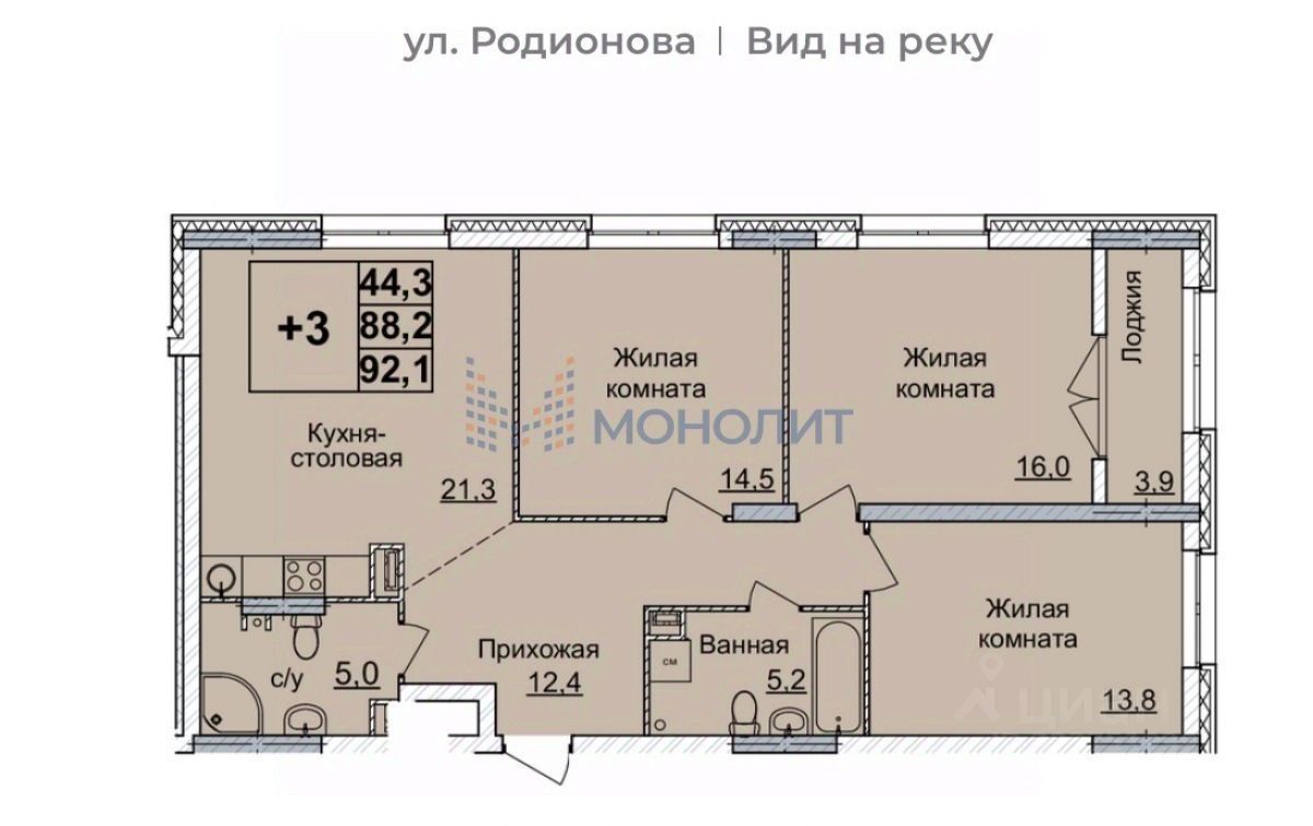 44,3 м²