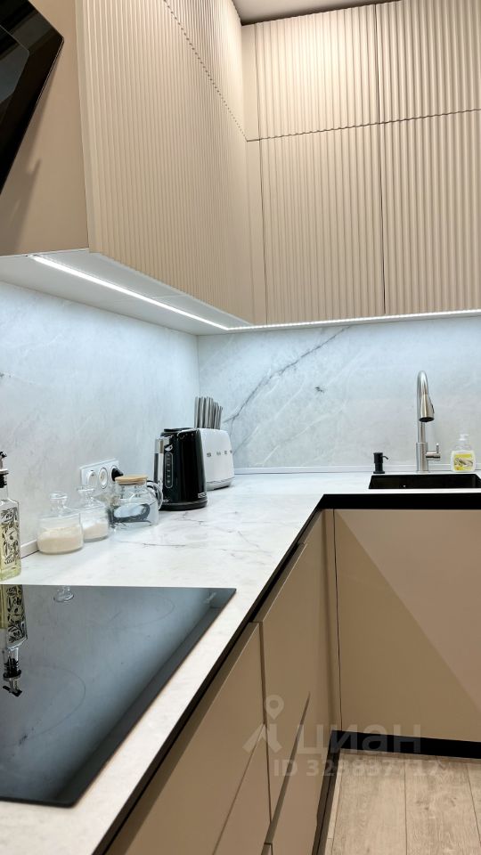 - Современная кухня оборудована качественной бытовой техникой: новая посудомоечная машина, холодильник,электрическая варочная панель, функциональная духовой шкаф — всё это достанется новым владельцам.