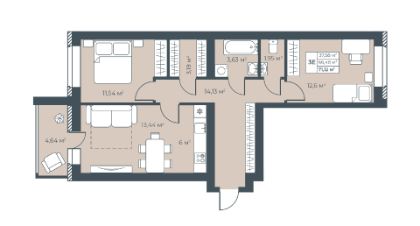 Продаётся 3-комнатная квартира в строящемся доме (Дом 1), срок сдачи: III-кв. 2027, общей площадью 71.12 кв.м., на 4 этаже. Новый жилой комплекс "Ботаника Парк" от застройщика "БМ Групп" расположен по адресу Россия, Нижегородская область, Выкса, квартал Инженера Шухова.