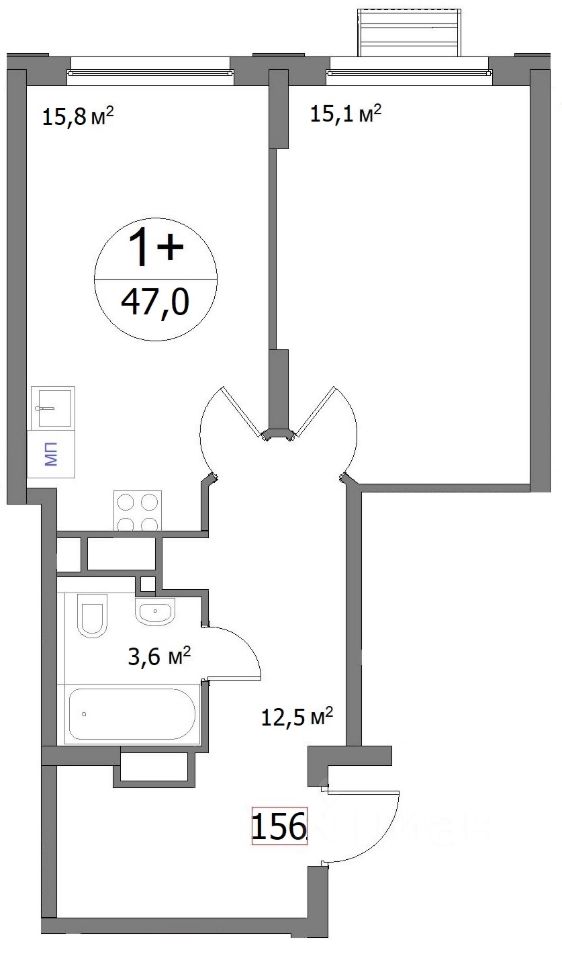 Жилая площадь15,2 м²