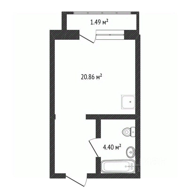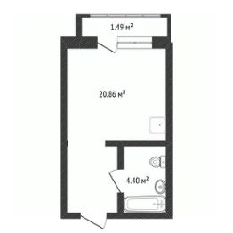 Общая площадь — 24,9 м² + лоджия, лоджия оборудована панорамными окнами, благодаря чему здесь можно оформить комфортную зону отдыха или рабочее пространство.