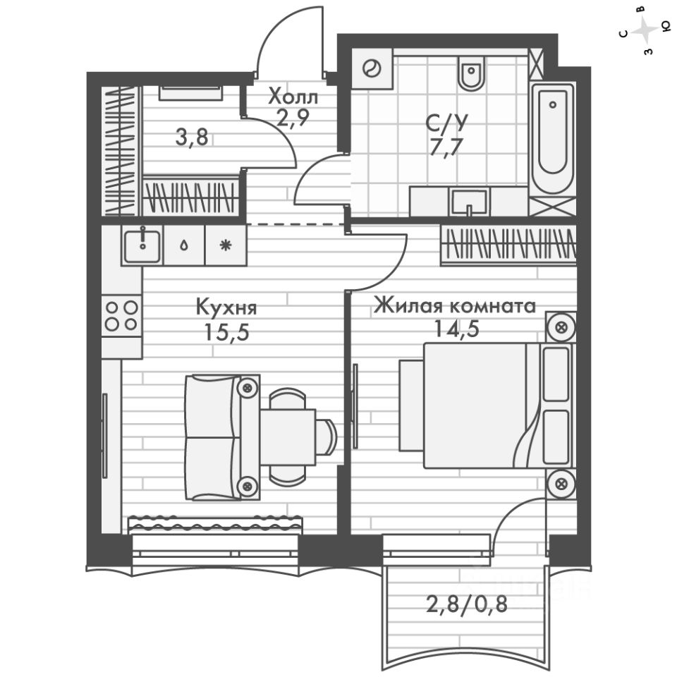 - Линейная планировка - максимальная функциональность и удобство.