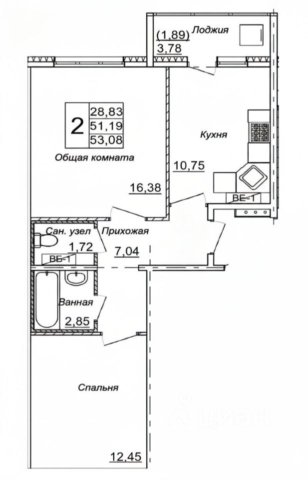 Общая площадь 51.2 м². Функциональная и продуманная планировка: