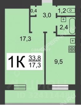 Ул. Есенина, дом 10 (кирпич), этаж 7/12, общий метраж 35,3 кв.м, комната 17,3 кв.м, кухня 9,5 кв.м.